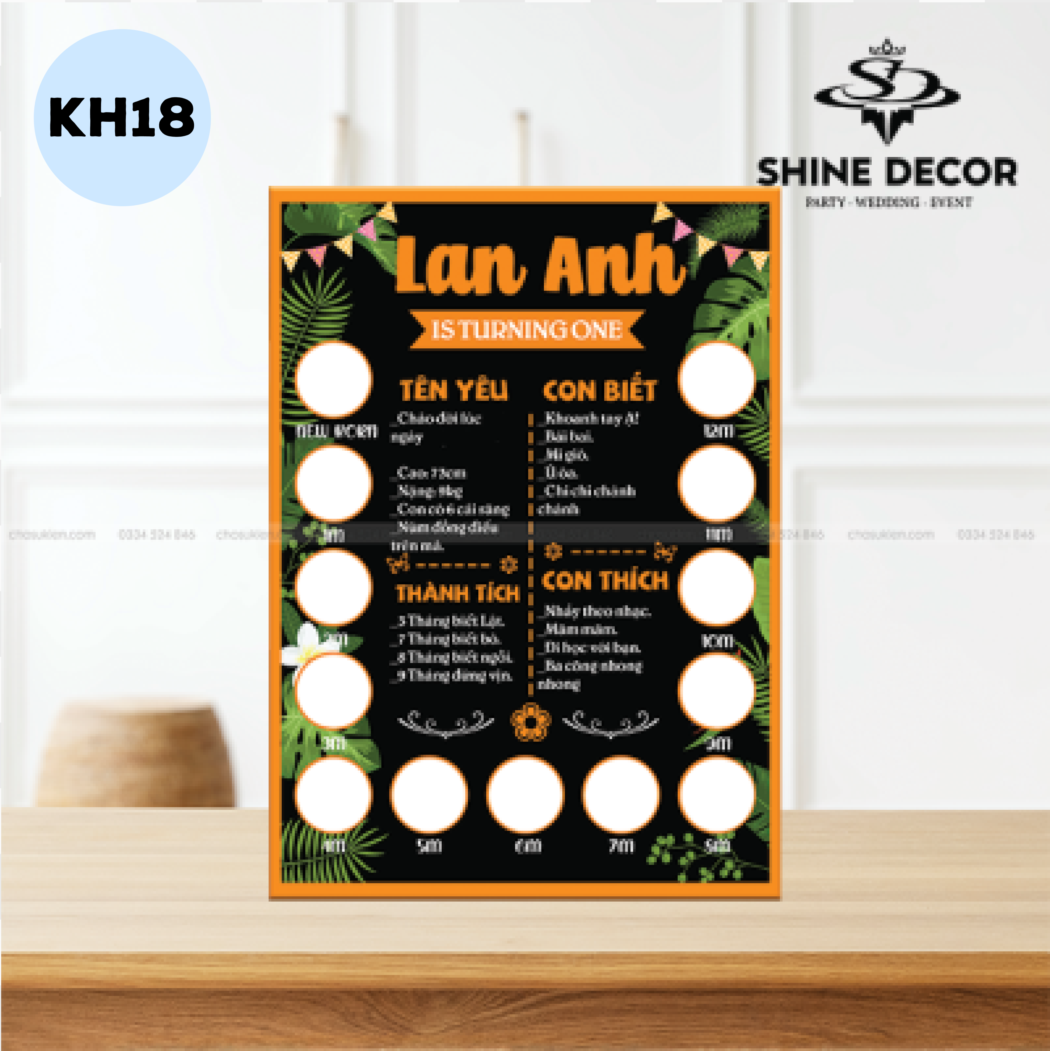 • Từ khi chào đời cho đến khi tròn 1 tuổi , bé trải qua những thay đổi về diện mạo đáng kể ; và sản phẩm này được thiết kế nhằm ghi lại những khoảnh khắc quý báu ấy. SHINE DECOR tin tưởng rằng khi ba mẹ nhìn những hình ảnh này, họ sẽ tràn đầy hạnh phúc. Hãy để sản phẩm này mang đến cho bạn cảm giác ấy ngay bây giờ!