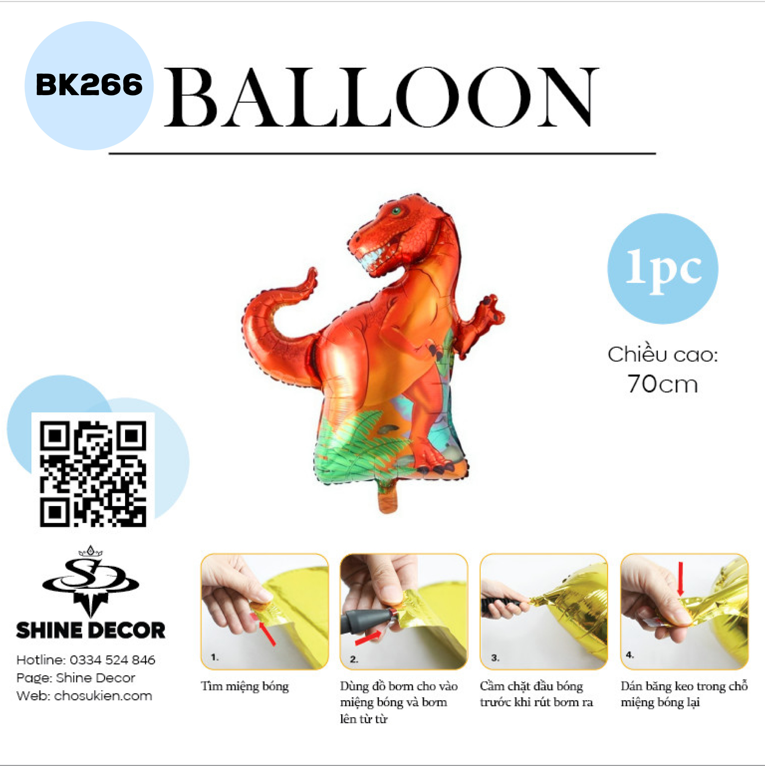 Bong Bóng Hình Khủng Long - Cam Dữ Dằn - BK266