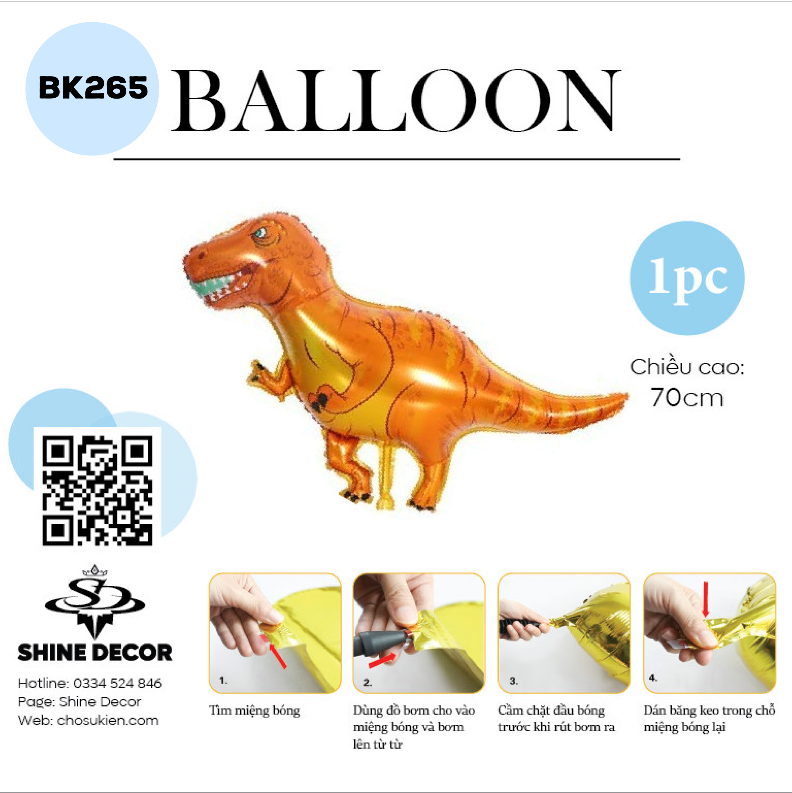Bong Bóng Hình Khủng Long - Cam đuôi Dài - BK265