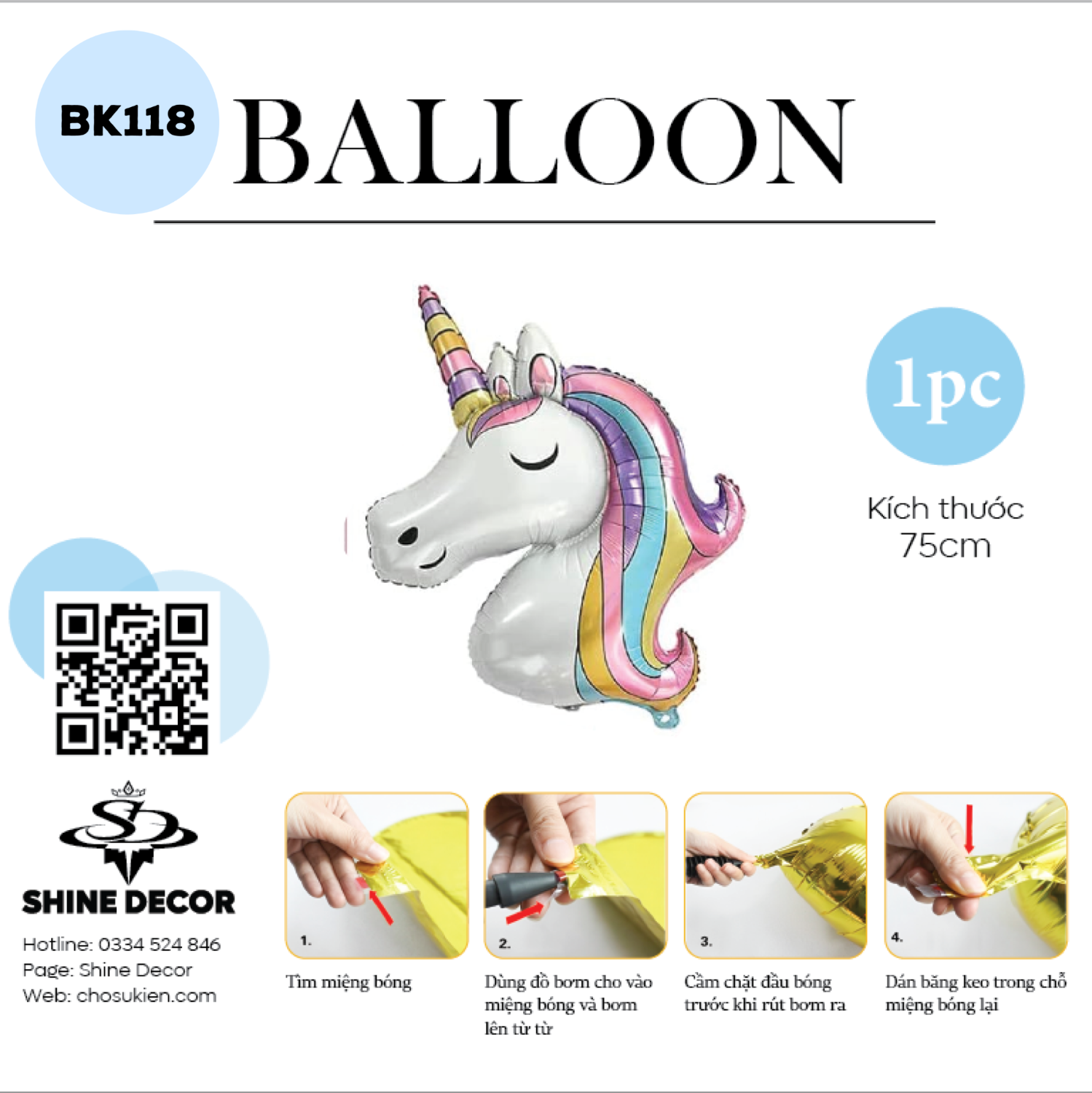 Bong Bóng Hình Unicorn- Đầu Unicorn - BK118
