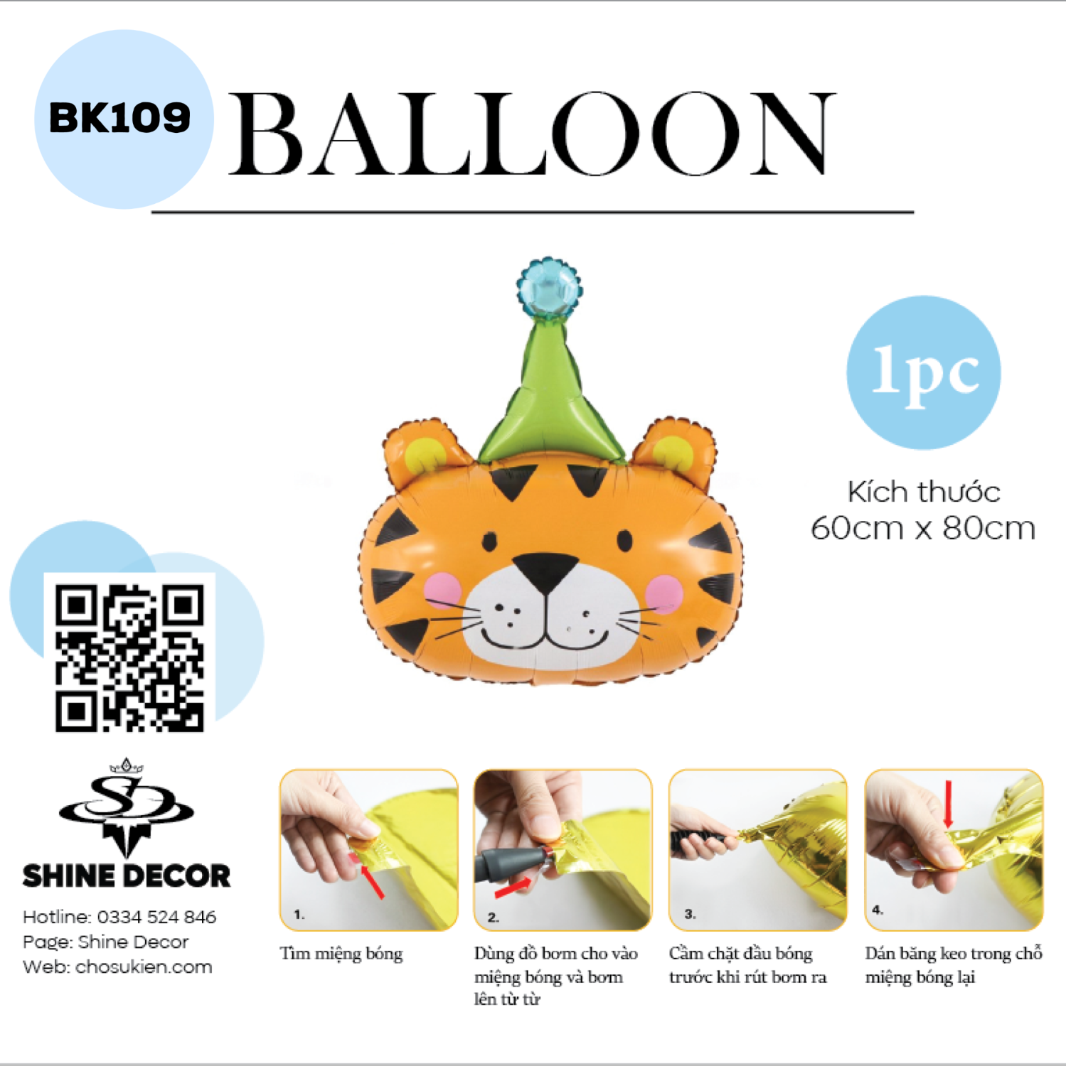 Bong Bóng Kiếng Hình Con vật - Hổ Đội Nón- BK109