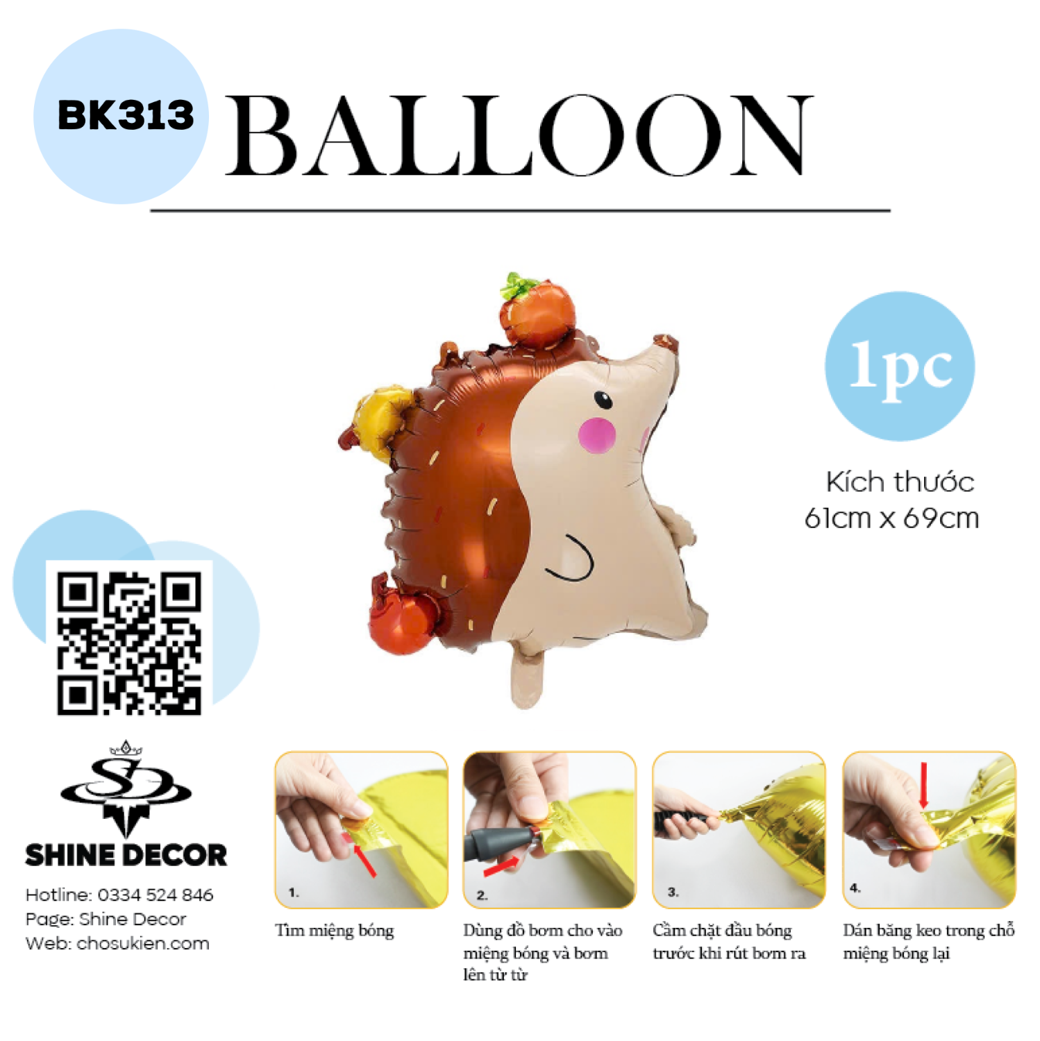 Bong Bóng Kiếng Hình Con vật - Nhím Nâu - BK313