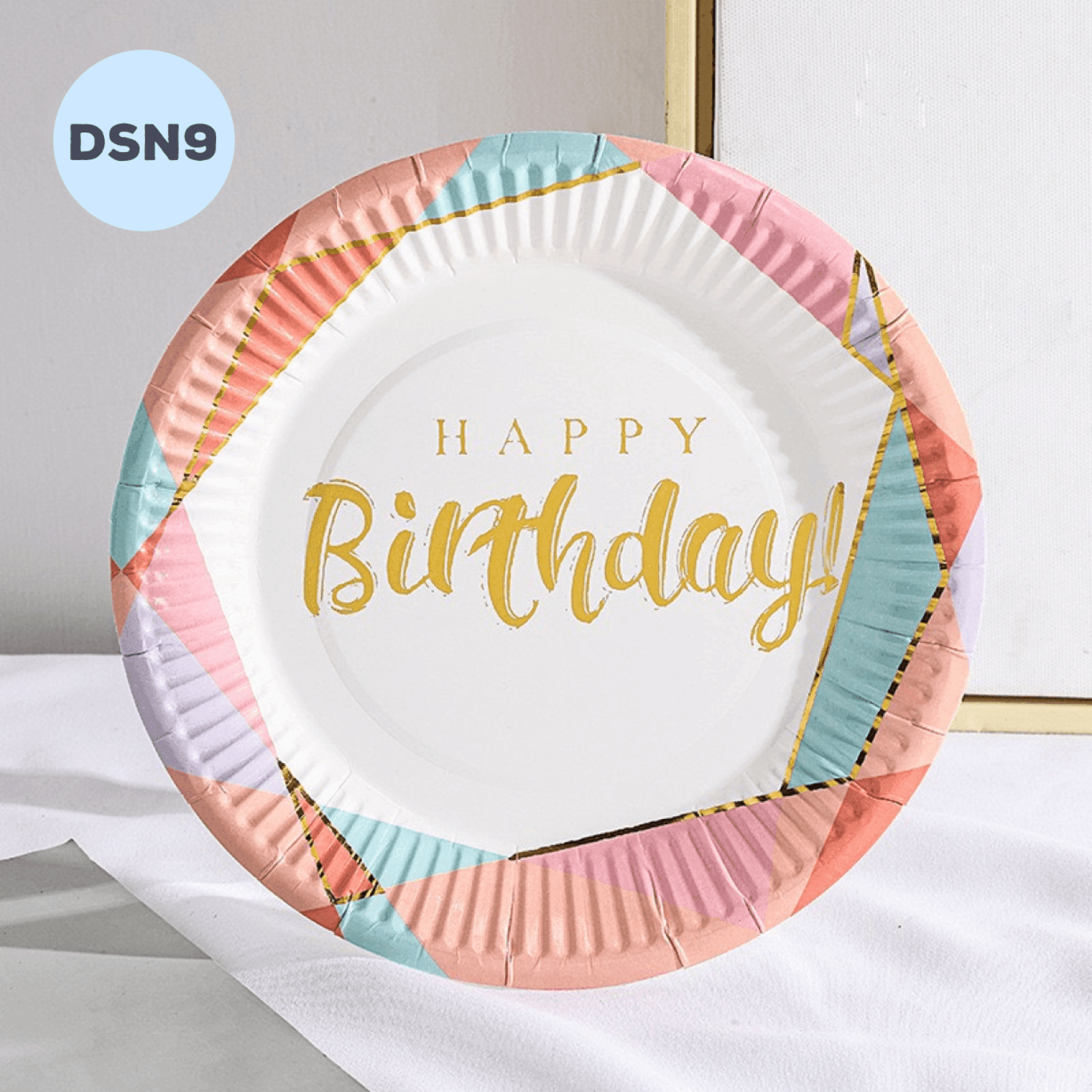 Dĩa sinh nhật đủ mọi màu sắc và nhiều mẫu mã góp phần trang trí cho bữa tiệc thêm nổi bật hơn. Dĩa sử dụng để đựng những miếng bánh kem ngon lành cho bạn tiện thưởng thức/