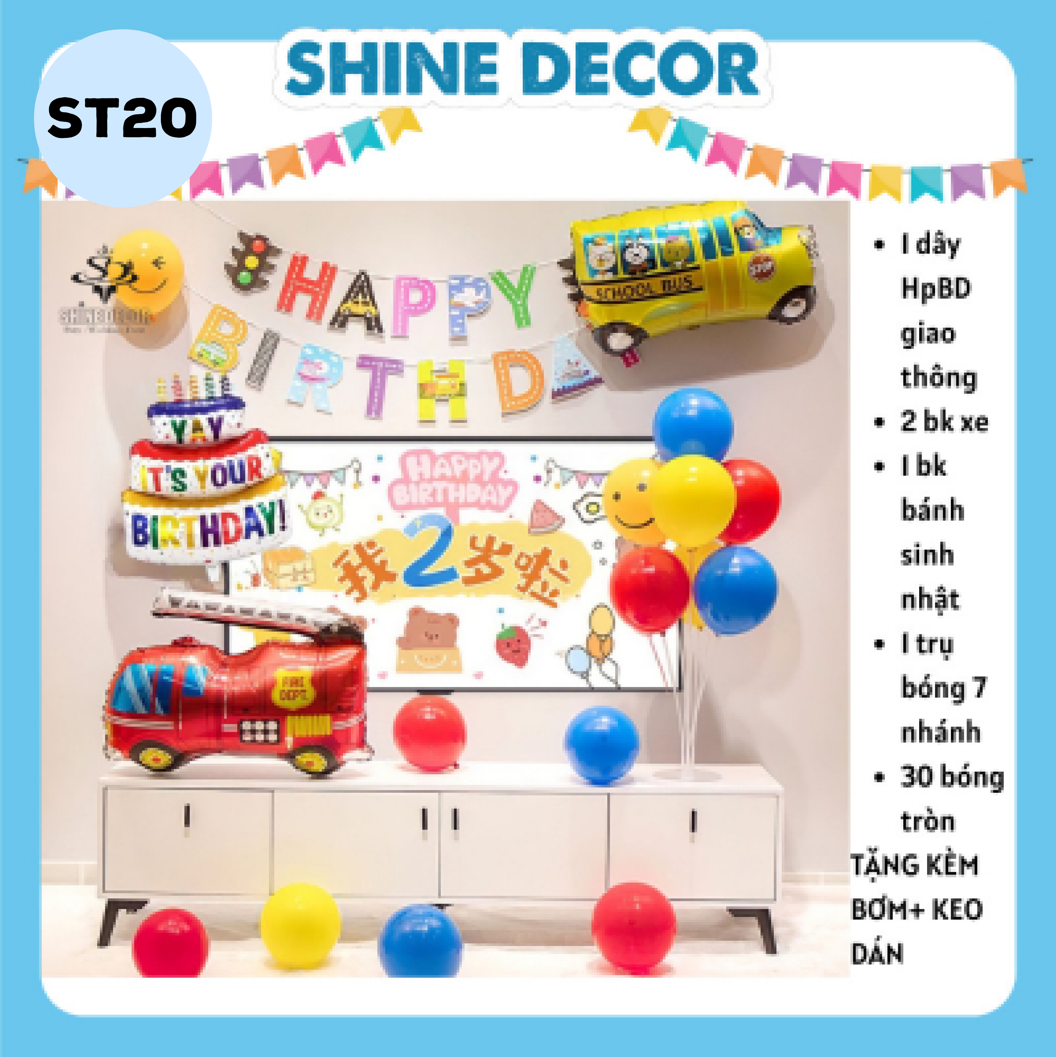 Shine Decor tự hào mang đến cho bạn một bộ sưu tập đồ trang trí sinh nhật đặc biệt dành riêng cho bé. Với các mẫu trang trí sinh nhật đa dạng và độc đáo, bạn có thể tạo ra không gian thú vị và phù hợp với sở thích của bé. Set bóng trang trí sinh nhật của chúng tôi sẽ làm cho bữa tiệc trở nên lung linh và rực rỡ hơn bao giờ hết. Bộ trang trí sinh nhật của chúng tôi đảm bảo sẽ tạo nên một không gian lý tưởng để bé yêu của bạn có một ngày sinh nhật đáng nhớ