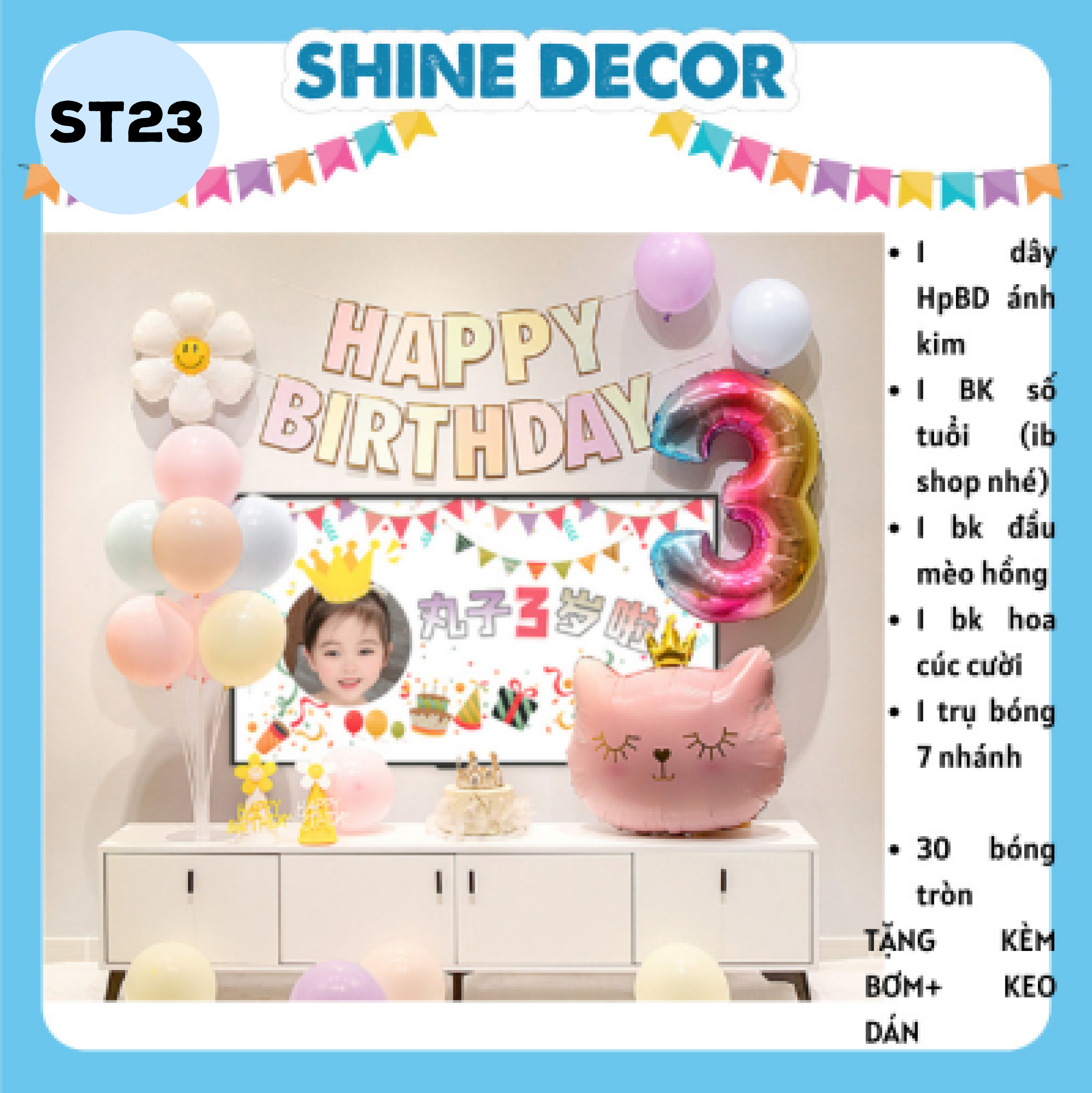 Shine Decor tự hào mang đến cho bạn một bộ sưu tập đồ trang trí sinh nhật đặc biệt dành riêng cho bé. Với các mẫu trang trí sinh nhật đa dạng và độc đáo, bạn có thể tạo ra không gian thú vị và phù hợp với sở thích của bé. Set bóng trang trí sinh nhật của chúng tôi sẽ làm cho bữa tiệc trở nên lung linh và rực rỡ hơn bao giờ hết. Bộ trang trí sinh nhật của chúng tôi đảm bảo sẽ tạo nên một không gian lý tưởng để bé yêu của bạn có một ngày sinh nhật đáng nhớ
